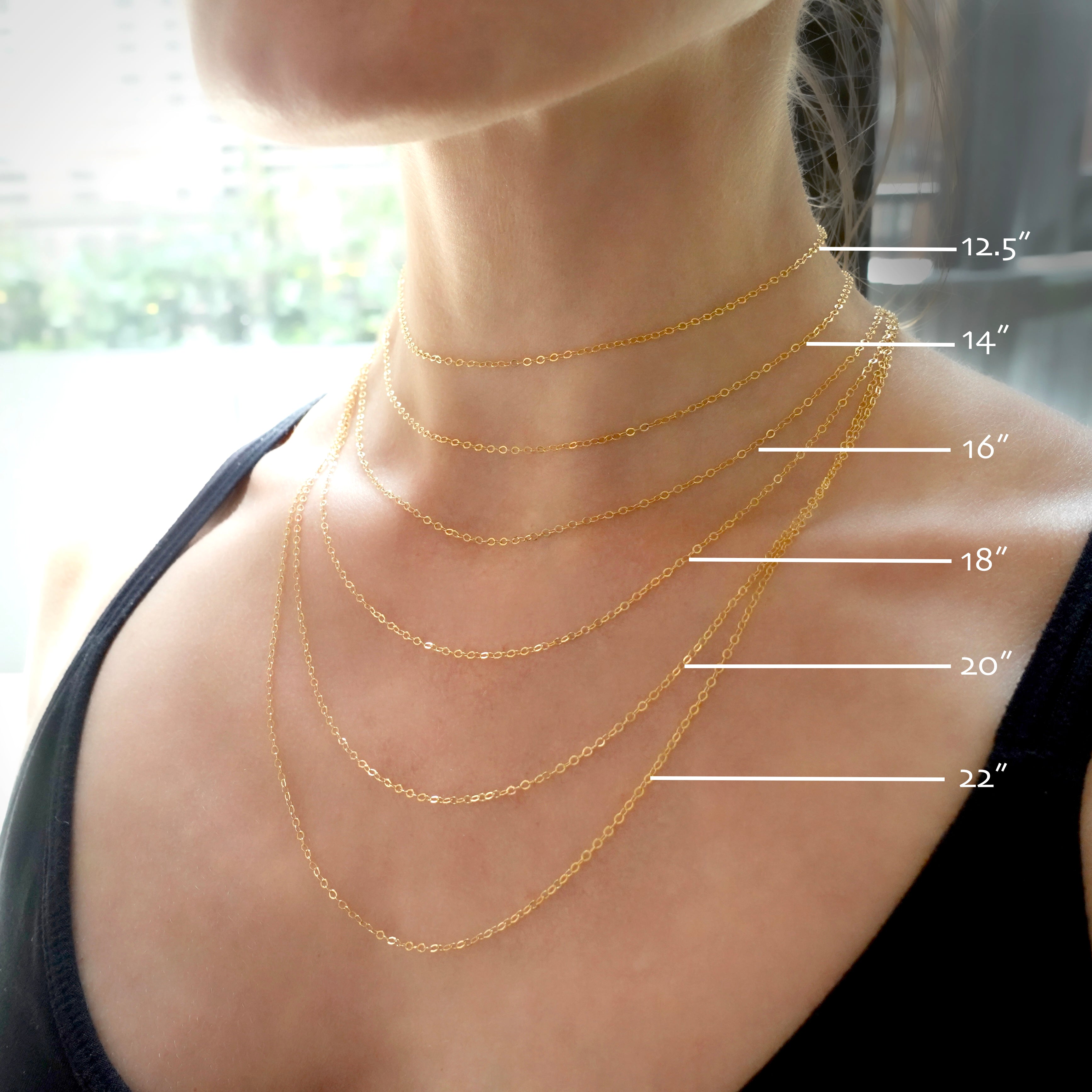 If you have a loose measuring tape at home, we’d recommend testing out the lengths to see what looks and feels best for you. We also suggest measuring a necklace you already own to have an idea of your most comfortable size.